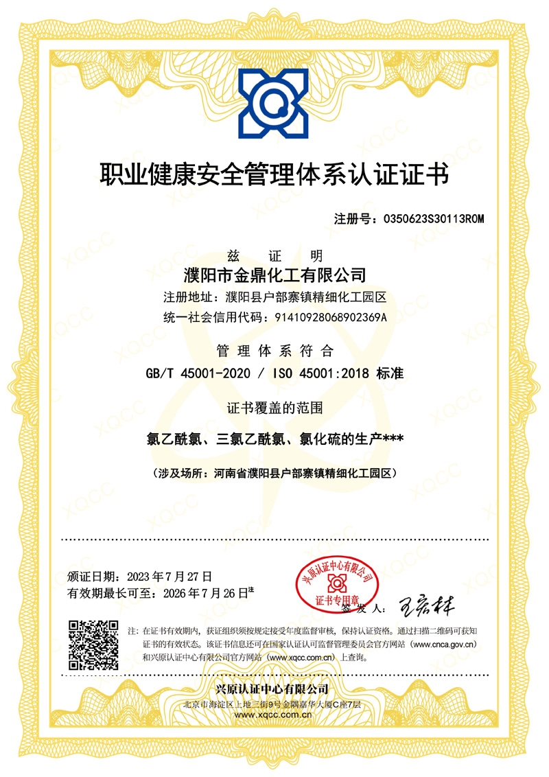 濮陽(yáng)市金鼎化工有限公司所屬其他基礎(chǔ)化學(xué)原料制造,公司主要產(chǎn)品規(guī)模為:10000噸/年氯乙酰氯、10000噸/年氯乙酸、5000噸/年氯化硫、6000噸/年氯甲醚、5000噸/年三氯乙酰氯、7000噸/年氯乙酸甲酯、3000噸/年二氯乙酸甲酯,副產(chǎn)鹽酸13000噸/年。產(chǎn)品廣泛應(yīng)用于醫(yī)藥、農(nóng)藥、染料、膠劑等行業(yè)。